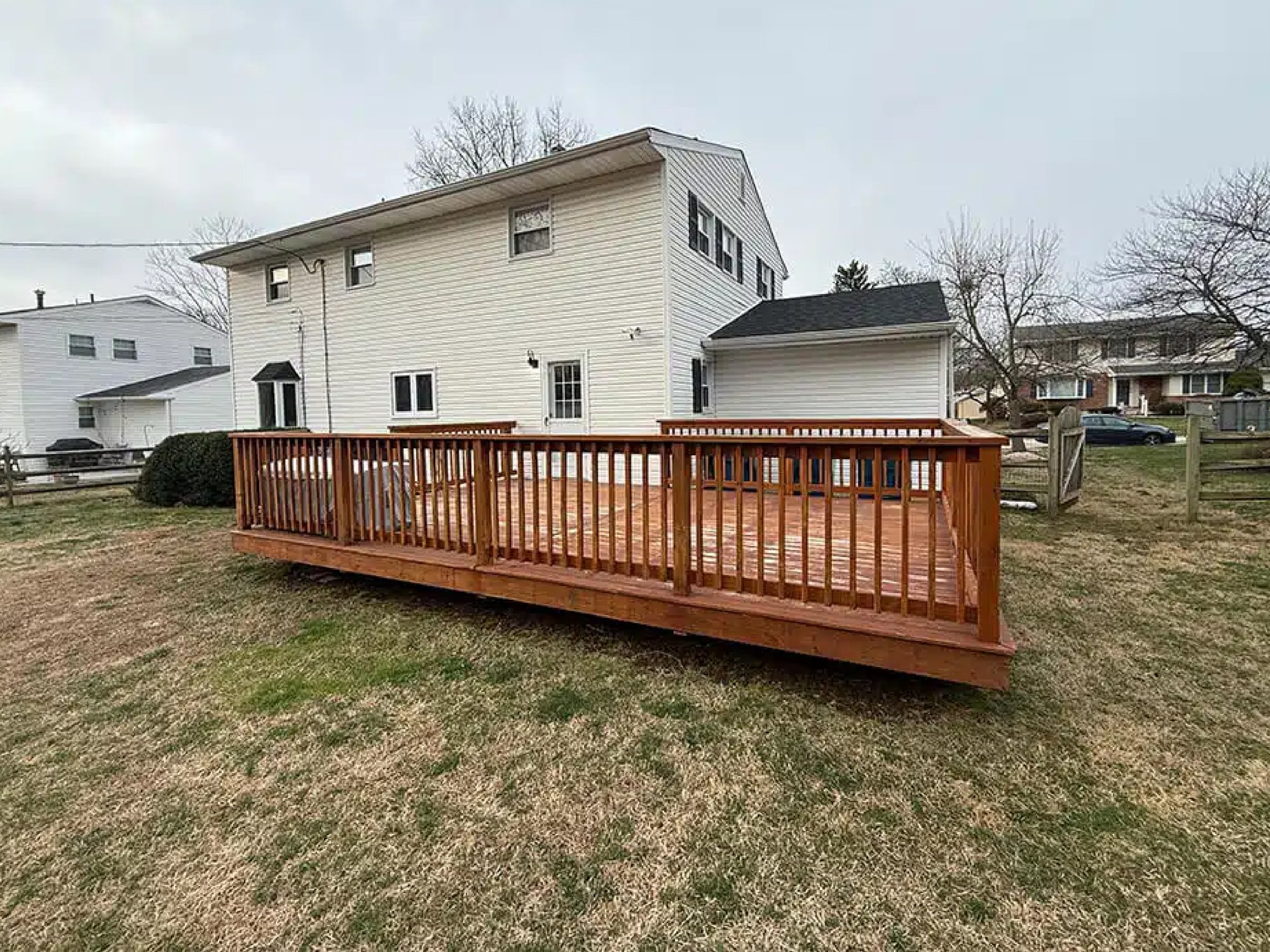 We truly make CUSTOM decks to fit your home perfectly so you and your family will enjoy and love it for years to come, we are very organized and the job will go very professionally and quickly. We never need to get in your house or park in your driveway…all is done roadside. You literally have to worry about nothing but enjoying your new deck in a few painless days of construction! We employ NO Subs! All work is done by the owner! We apply for and obtain for all necessary permits. We are licensed, bonded and fully insured! We are a proud member of the BBB! Each of our clients at the time of the estimate are given an information packet with hundreds of references and deck information. You will also receive our home number, job site cell phone number, email address and all license and insurance information…you will have total access to us 24 hours a day 7 days a week should you ever have a question!